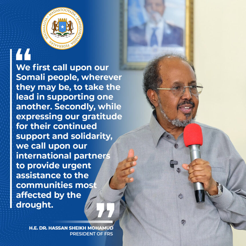 دعا الرئيس الصومالي، حسن شيخ محمود، الشعب الصومالي والشركاء الدوليين إلى دعم جهود الإغاثة المستمرة لمواجهة آثار الجفاف.