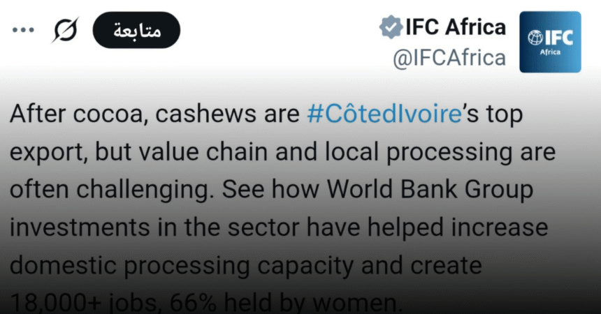 البنك الدولي: استثمارات في قطاع الكاجو تعزز التصنيع المحلي وتوفر آلاف الوظائف في كوت ديفوار