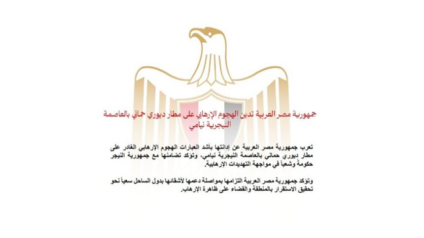 Reading: مصر تدين الهجوم الإرهابي على مطار ديوري حماني في نيامي وتؤكد تضامنها مع النيجر