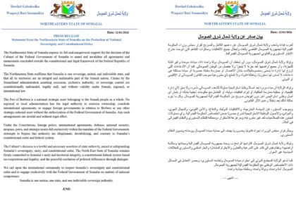 ولاية شمال شرق الصومال تدعم قرار الحكومة الفيدرالية لحماية السيادة الوطنية والنظام الدستوري