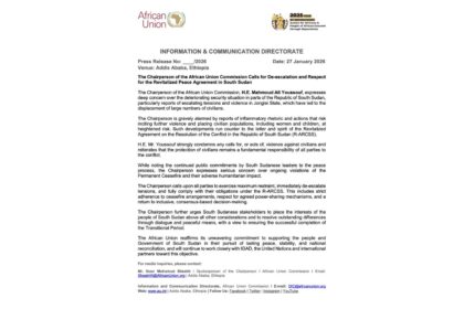 رئيس مفوضية الاتحاد الأفريقي يدعو لخفض التصعيد واحترام اتفاق السلام في جنوب السودان