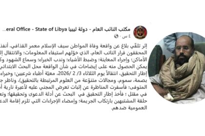 النائب العام الليبي يفتح تحقيقات موسعة في واقعة مقتل سيف الإسلام القذافي