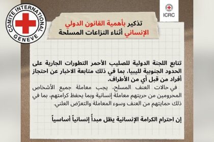 بعد أنباء احتجاز عدد من الأفراد.. الصليب الأحمر الدولي تدعو جميع الأطراف في ليبيا لاحترام الكرامة الإنسانية