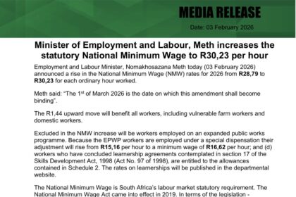 جنوب أفريقيا ترفع الحد الأدنى للأجور الوطنية ابتداءً من مارس 2026